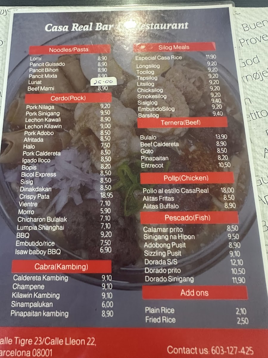 Welcome to Casa-real, a delightful Filipino restaurant nestled in the heart of Ciutat Vella, Barcelona. Known for its authentic and flavorful dishes, Casa-real promises a culinary journey that transports you straight to the Philippines.